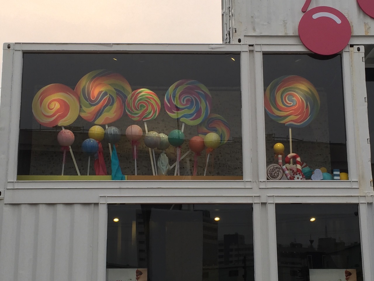 這次製作了色彩繽紛的道具 是關於糖果、旋轉木馬、熱氣球
